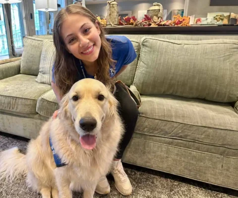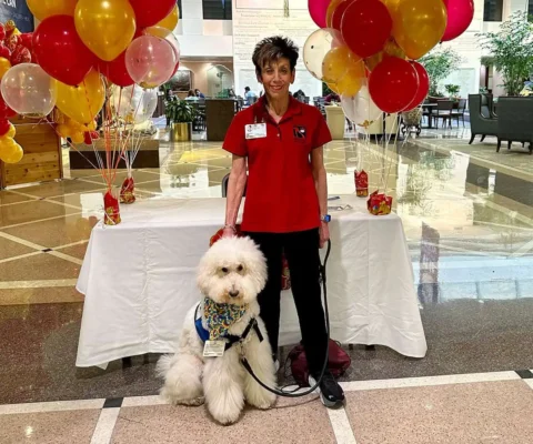 Andale was a puppy-in-training for Guide Dogs for the Blind when he was career-changed due to sensitivity with loud noises. He loves working and interacting with people, so we looked into opportunities that would still allow him to do that. We found that pet therapy was the perfect fit! We are so grateful to give back to our community, one tail wag and paw shake at a time.